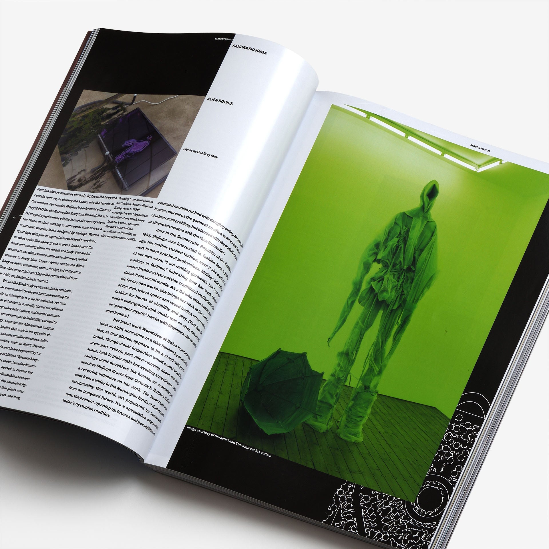 And finally, “SEASON,” the magazine’s opening section, accounts for the best of this fall/winter with profiles and interviews: Baiser Mortel by Cyrus Goberville in conversation with Bill Kouligas; Alexandra Bircken by Allan Gardner; Gateano Pesce by Luis Ortega Govela; Dash Snow by Katja Horvat; Calla Henkel by Theresa Patzschke; Avavav by Daria Miricola; Sara Sadik by Gabriela Acha; Julian-Jakob Kneer by Allan Gardner; Lamin Fofana by Claire Mouchemoure; Sayre Gomez by Dalya Benor; Filipinx by Lola Kramer; Martin Margiela by Francesca Gavin; Nuova Orfeo by Lorenzo Basilico; Sandra Mujinga by Geoffrey Mak; OMA NY: Search Term by Tibor Bielicky; Poison Anna by Conor McTernan; and Pope.L by Hanna Girma.